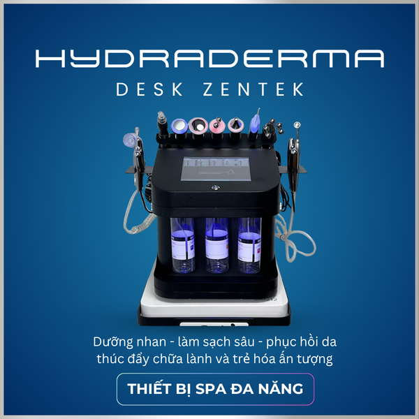 HYDRADERMA DESK ZENTEK là thiết bị thẩm mỹ đa năng thế hệ mới, được thiết kế để thực hiện một liệu trình chăm sóc da hoàn chỉnh với các công đoạn nổi bật: Làm sạch sâu - Cung cấp dưỡng chất - Tái tạo và Phục hồi.